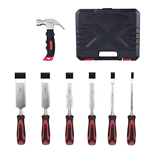 Michark Formones Para Madera, 8 Piezas Madera Para Tallar(6mm/13mm/19mm/25mm/32mm/38mm), Cincel con Martillo Para Tallar Madera con Estuche, Para Tallar Madera, Carpintería, Cortar los Bordes