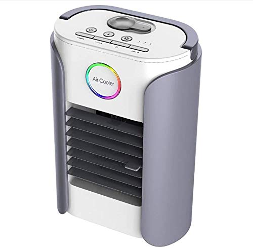 Mini enfriador de aire multifunción USB portátil, aire acondicionado portátil, ventilador de mesa, mini enfriador evaporador, 3 velocidades, conexión Bluetooth y radio