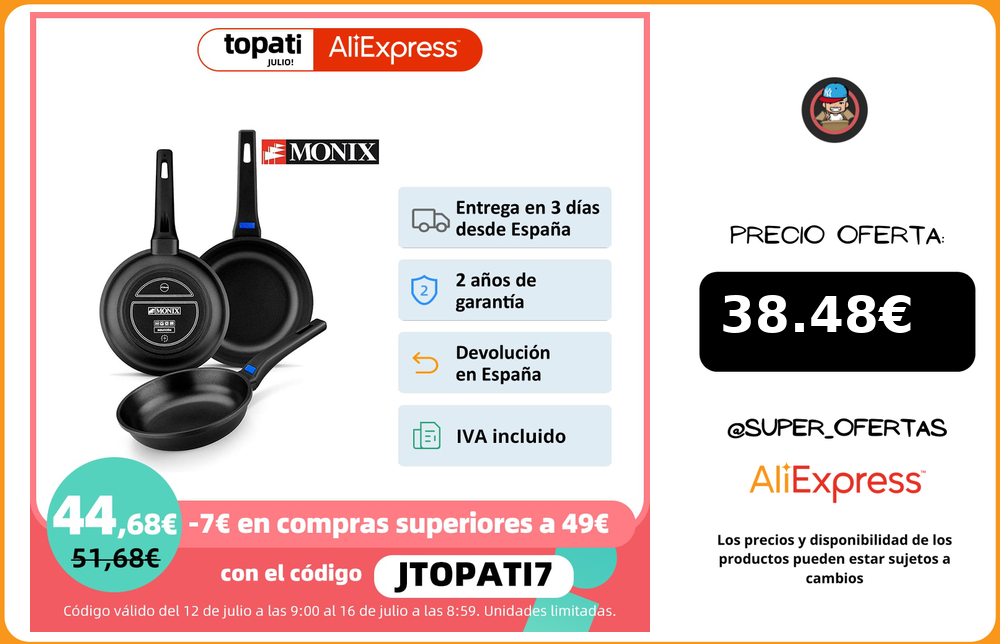 Monix Solid Plus Lote de sartenes 18 22 26 cm de aluminio fundido y antiadherente Classic. Cocina gas vitroceramica inducción,Consigue increíbles descuentos en artículos de vendedores chinos y de todo el mundo. ¡Disfruta de envíos gratis, ofertas por tiempo limitado, devoluciones sencillas y protección al comprador!