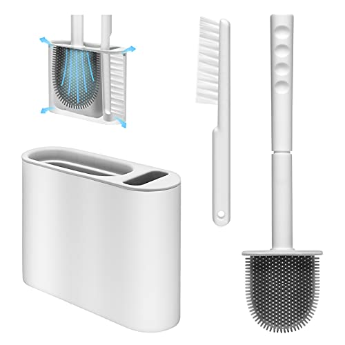 MTSCE Escobillas de Baño, Escobilla WC de Inodoro Con Cepillo de Limpieza, Escobillas WC de Inodoro de Silicona Para Baño, Montaje en Pared y Juego de Secado Rápido Vertical (Gris)