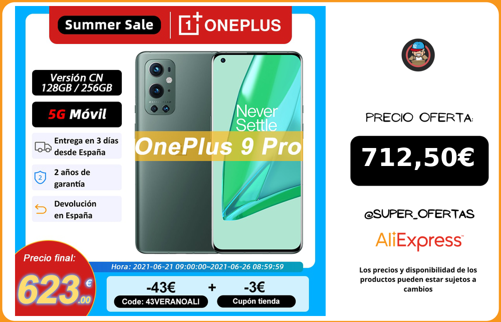OnePlus 9 Pro, ROM global con Oxygen OS, 8GB RAM 256GB ROM, teléfono móvil Snapdragon 888 5G, pantalla AMOLED fluida de 6,7» 120Hz, triple cámara trasera de 50MP, 4500mAh Warp Charge 65T 50W Wireless Charge,Consigue increíbles descuentos en artículos de vendedores chinos y de todo el mundo. ¡Disfruta de envíos gratis, ofertas por tiempo limitado, devoluciones sencillas y protección al comprador!