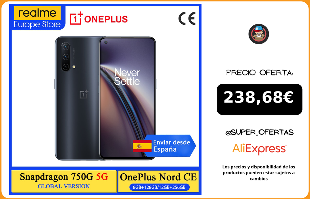 OnePlus Nord CE 5G EB2103 teléfono inteligente 8GB 128GB y 12GB 256GB Snapdragon 750G Warp CARGO DE 30T Plus,Consigue increíbles descuentos en artículos de vendedores chinos y de todo el mundo. ¡Disfruta de envíos gratis, ofertas por tiempo limitado, devoluciones sencillas y protección al comprador!