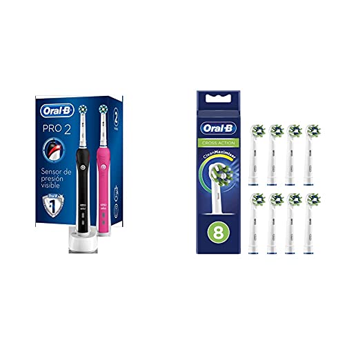Oral-B 2950N PRO 2 – Pack De 2 Cepillos De Dientes Eléctricos + Oral-B CrossAction Cabezales de Recambio Tamaño Buzón, Pack de 8 Recambios con Tecnología CleanMaximiser