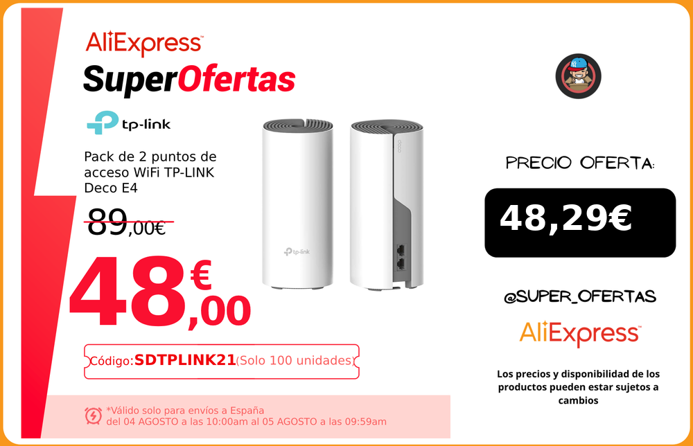 Pack de 2 puntos de acceso WiFi TP LINK Deco E4, repetidor wifi mesh, 2.4GHz (300Mbps), 5GHz (867Mbps), doble banda AC 1200Mbps,Consigue increíbles descuentos en artículos de vendedores chinos y de todo el mundo. ¡Disfruta de envíos gratis, ofertas por tiempo limitado, devoluciones sencillas y protección al comprador!