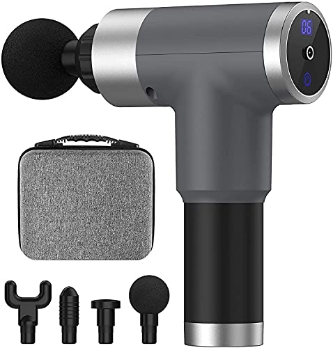 Pistola de Masaje Muscular, Masajeador Corporal de Mano para Aliviar el Dolor, Pistola Masajeadora de Percusión Recargable de 6 Velocidades con 4 Cabezales de Masaje y Estuche de Transporte