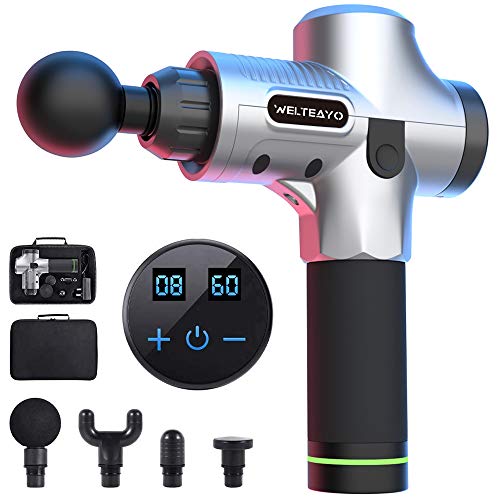Pistola de Masaje Muscular, Masajeador de Músculos de Tejido Profundo con 20 Niveles Ajustables, 4 Cabezales de Masaje y Pantalla LCD,Ultra Silenciosos para Relajación Fatiga, Ideal para Gimnasio.