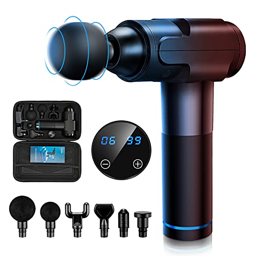 Pistola de Masaje Muscular, Masajeador Muscular Manual de Tejido Profundo, Masajeador de Percusión Ultra Silencioso con 6 Cabezales de Masaje y Pantalla LCD