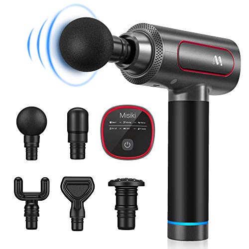 Pistola de Masaje Muscular, Misiki Masajeador de Músculos de Tejido Profundo con 6 Modos Ajustables, Pistola Masajeadora Muscular para Relajación, Aliviar el Dolor Muscular, 5 Cabezas de Masaje