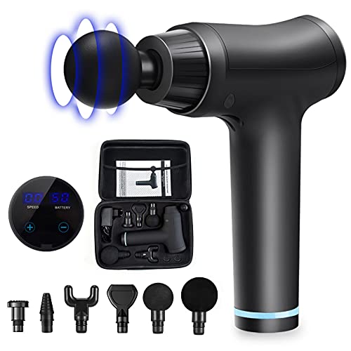 Pistola de masaje muscular, Oxford Street Pistola de masaje muscular de tejido profundo, 30 niveles ajustables, 6 cabezales de masaje y pantalla LCD, súper silenciosa, para aliviar el dolor muscular