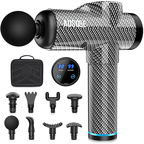 Pistola Masaje Profesional, AUSOQE Pistola Masajeadora Muscular con 30 Niveles Ajustables y 8 Cabezales de Masaje, Pistola de Masaje Electrico con Pantalla LCD, Para Aliviar el Dolor Muscular