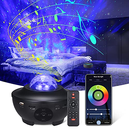 Proyector de Luz Estrellas, Altavoz de música con Conexión wifi Bluetooth y control remoto ,Tomshine lampara proyector infantil para la decoración del fiestas infantiles