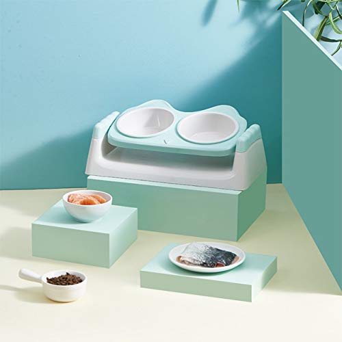 Queta Cuenco para Mascotas Cuencos de Dobles Plato para Mascotas Inclinada de 15 ° Comedero Gato de Alimentos y Agua Comedero para Mascotas gatos y perros Antideslizantes Tazón de Mascotas( Azul)