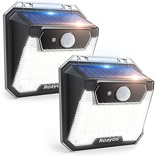 Reayos Luz Solar Exterior,【2Paquete/148 LED/3 Modos】 Súper Brillante Focos LED Exterior Solares con Sensor de Movimiento,2200mAH IP65 Impermeable Lampara solar exterior para Jardín,Garaje,Calle,Patio
