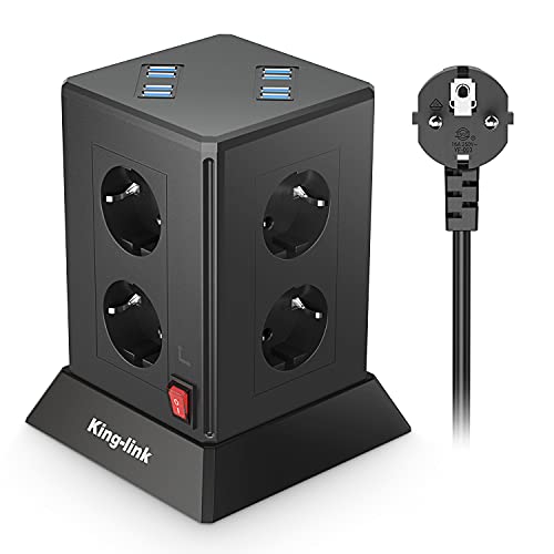 Regleta Vertical Enchufes de 8 Tomas y 4.8A USB Carga(24w), Torre Adaptador Multiple Enchufes, Toma de Mesa con Protección Contra Sobrecargas, Adecuado Para el Hogar y la Oficina, Negro