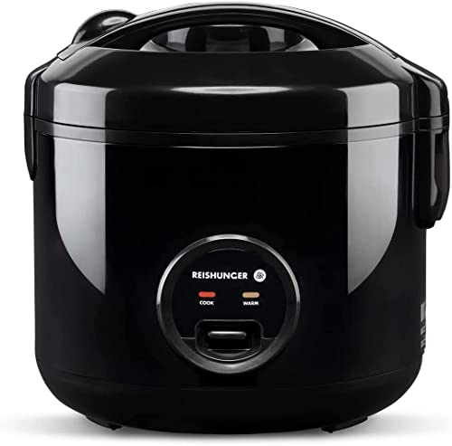 Reishunger Olla Arrocera Electrica y Vaporera Negro con Función de Mantenimiento del Calor – Para 1-6 Personas – Preparación rápida sin quemarse – Revestimiento Antiadherente