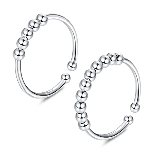 Retilio Anillos Giratorios 925 Plata Esterlina Anillos Ansiedad para Mujer Anillos Ajustables Abiertos Apilables(2Piezas)