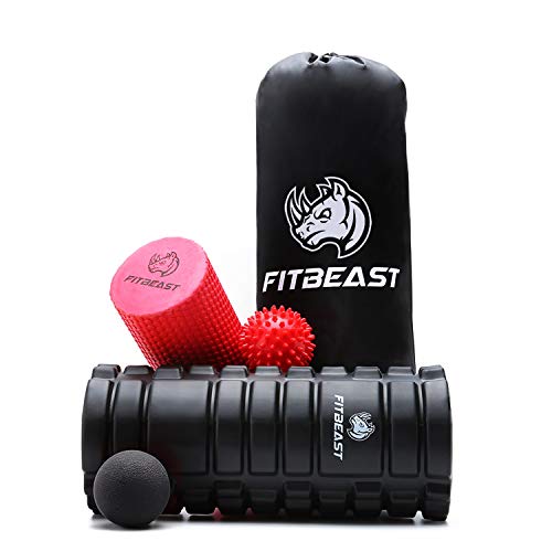 ✅【PRÁCTICO SET DE RODILLO DE HULE】: El set de rodillo de hule de FitBeast viene con un rodillo de hule de color negro con textura 3D, un suave rodillo de hule rojo, una pelota de lacrosse roja y una pelota dura de lacrosse negra. Estas no sólo relajarán tus músculos y brindará un masaje efectivo, si no también ayudará a aliviar el dolor y mejorar la circulación de la sangre.