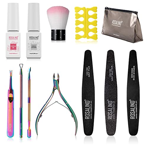 ROSALIND Juego de quitacutículas de gel, quitacutículas, set de manicura profesional para el salón o el hogar – acero inoxidable