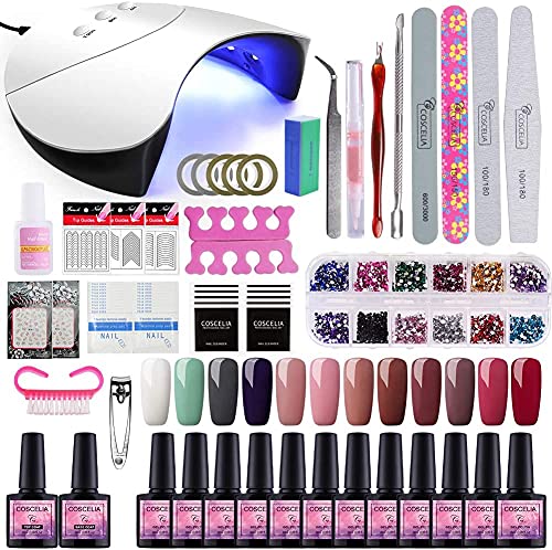 Saint-Acior Lámpara Secador de Uñas 36W UV/LED 12PCS Esmalte Semipermanente Kit Uñas de Gel Primer Uñas Top Coat DIY Uña Arte Kit para Manicura