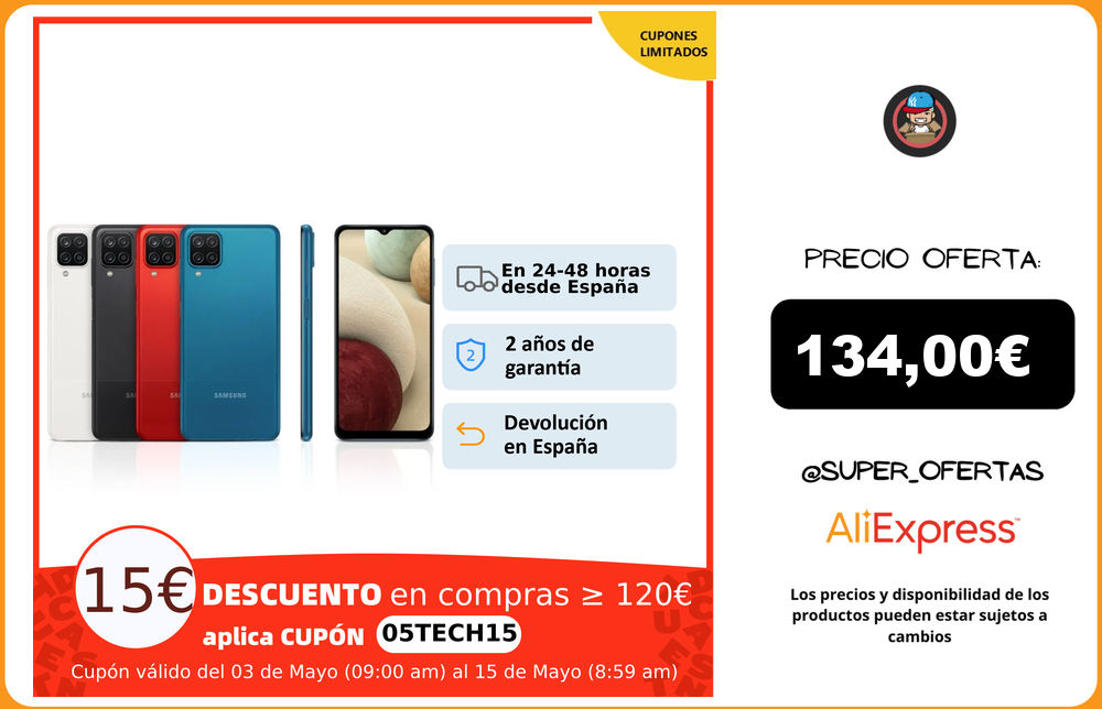 Samsung Galaxy A12, Smartphone HD+ LCD 6.5″, infinity display, 4+64/128GB, 4 cámaras,48MP, selfie 8MP, carga rápida 15W, 5000mAh,Consigue increíbles descuentos en artículos de vendedores chinos y de todo el mundo. ¡Disfruta de envíos gratis, ofertas por tiempo limitado, devoluciones sencillas y protección al comprador!
