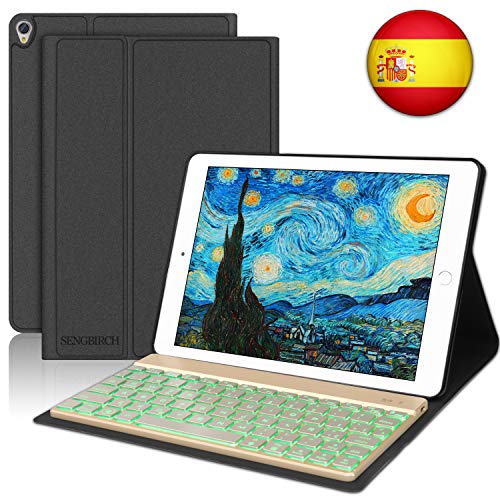 SENGBIRCH Teclado Funda para iPad 10.5, Funda Protectora Slim Fit con Retroiluminado con Retroiluminación de 7 Colores y Teclado Bluetooth para iPad Air 3 2019-iPad Pro 10.5 2017 (Negro)