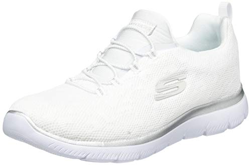 Skechers Summits Leopard Spot, Zapatillas Mujer, White/Silver, 38 EU
