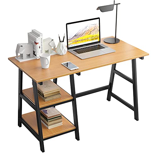 SogesPower Escritorio para ordenador, oficina, estudio, ordenador portátil, con marco de acero y 2 estantes para mucho espacio, 120 x 60 x 75 cm, roble