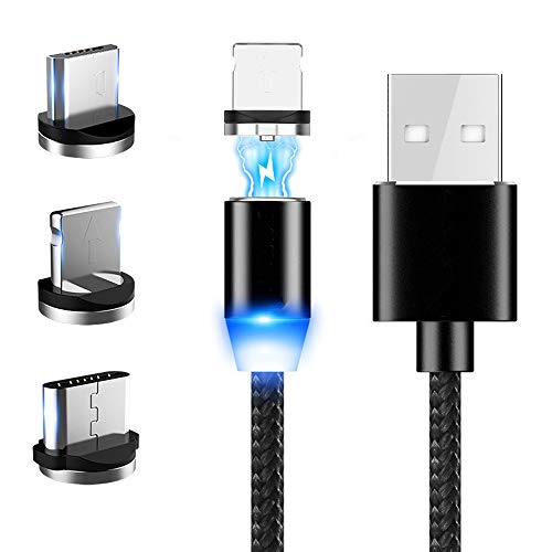 Staright 3 en 1 Multi Cable de Carga, 2M Nylon Multi USB Cargador Cable Múltiples Mobile Phone Charging Cable 3 in 1 Micro USB Type-C Magnetism Dustproof Charging Cables with LED Indicator (negro)