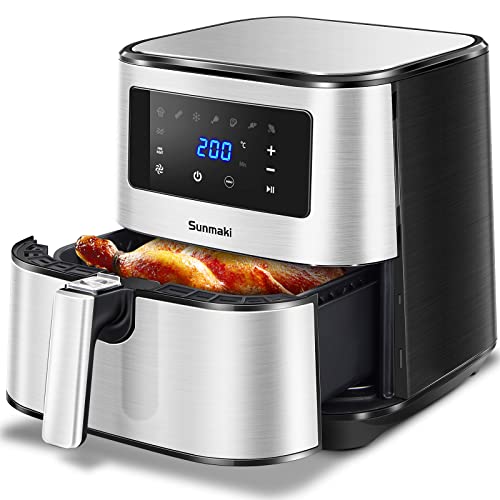 Sunmaki Freidora Sin Aceite, Freidora de Aire 5,5L, Freidora Aire con 8 Programas, Pantalla LED Táctil Temperatura y Tiempo Ajustable, Temporizador, 1700W (Plata)