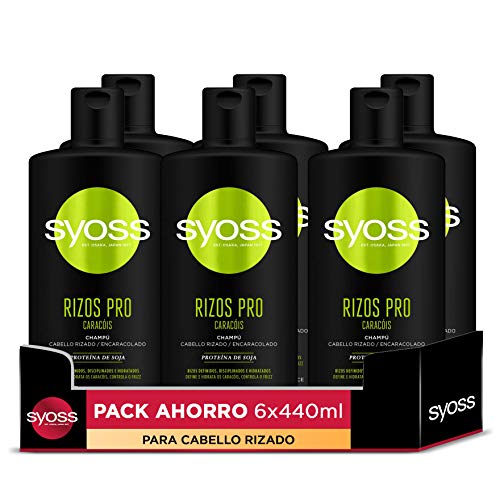 Syoss – Champú para pelo rizado – Rizos Pro – 6uds de 440Ml (2.640ml) – Rizos definidos, disciplinados e hidratados – Cabello como recién salido de la peluquería