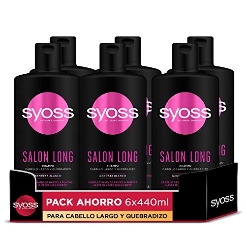 Syoss – Champú Salon Long – 6uds de 440Ml (2.640ml) – Para cabello largo y quebradizo – Cabello sano de raíces a puntas – Cabello como recién salido de la peluquería