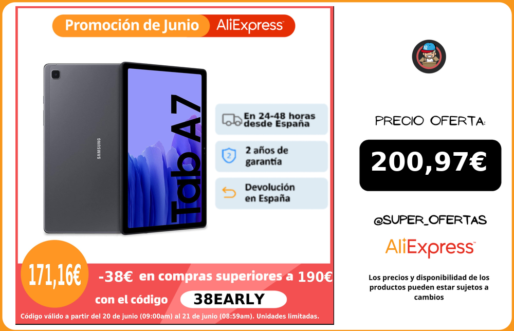 Tablet SAMSUNG Galaxy Tab A7 WiFi/4G, TFT 10.4″ WUXGA+, 3GB + 32/64GB (ampliable con MicroSD), 7040mAh, 4 altavoces, Dolby Atmos,Consigue increíbles descuentos en artículos de vendedores chinos y de todo el mundo. ¡Disfruta de envíos gratis, ofertas por tiempo limitado, devoluciones sencillas y protección al comprador!
