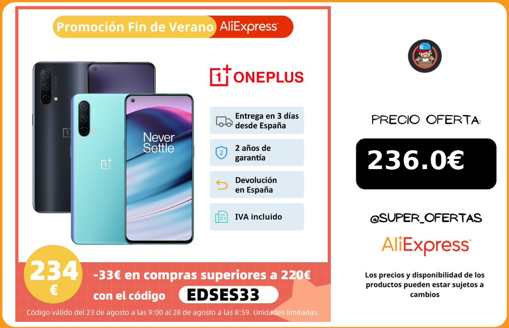 Teléfono inteligente OnePlus Nord CE 5G EB2103, versión global, 8GB 128GB / 12GB 256GB, Snapdragon 750G, Warp Charge 30T Plus 4500mAh, 6.43 » 90Hz; 25€ Código: 08ESOW25,Consigue increíbles descuentos en artículos de vendedores chinos y de todo el mundo. ¡Disfruta de envíos gratis, ofertas por tiempo limitado, devoluciones sencillas y protección al comprador!