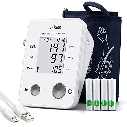 Tensiómetro de Brazo digital, U-KISS Monitor de Presión Arterial Digital Automatico con Gran Pantalla LED, Deteccion de Irregular Arritmia, Brazalete 22-32cm
