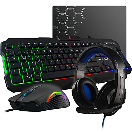 The G-Lab Combo Argon E/DE – Pack de 4 en 1 – Teclado Gamer QWERTZ Iluminado 3200 dpi Gamers Gamer Auriculares Gaming con Base Antideslizante para PC PS4 y Xbox One, Color Negro