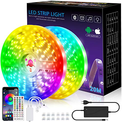 Tiras LED de 20M con Controlador Bluetooth,Sincronización Musical,Control Remoto IR de 40 Teclas,Luz LED RGB 5050 Controlada por Teléfono Móvil,Apta para Televisor,Dormitorio, Hogar.(10M*2)