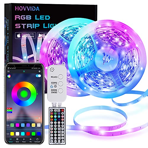Tiras LED, HOVVIDA 20M Bluetooth Luces de Tiras LED 5050 RGB 12V para Habitación, Controladas por APP, IR Control Remoto y Controlador, 16 Milliones de Colores, 28 Estilos, Modo de Horario