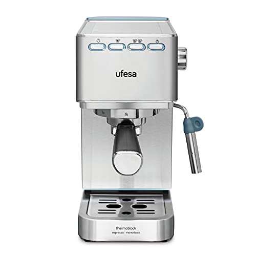 Ufesa CE8020 Capri Cafetera Expresso y Capuccino, 20 Bares, 1350W, Sistema Thermoblock, Vaporizador Orientable, 2 Modos: Café Molido o Monodosis, Depósito 1.4L, 1 o 2 Cafés, Apagado Automático, Inox