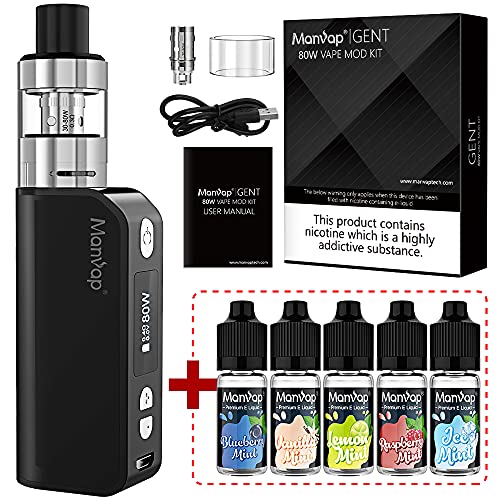 Vaper Cigarros Electronicos Manvap® Gent 7W-80W E cigarette Vape Recargable 2200mAh OLED Pantalla Box Mod – E Líquido con 5x10ml sin nicotina, Negro