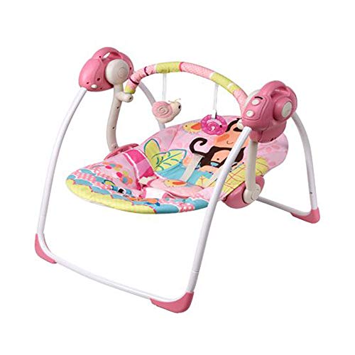 VASTFAFA Balancín eléctrico para bebé, función balancín, 6 velocidades, 2 direcciones de balanceo, 16 melodías, asiento extraíble, reposacabezas, balancín, diseño de mono, color rosa