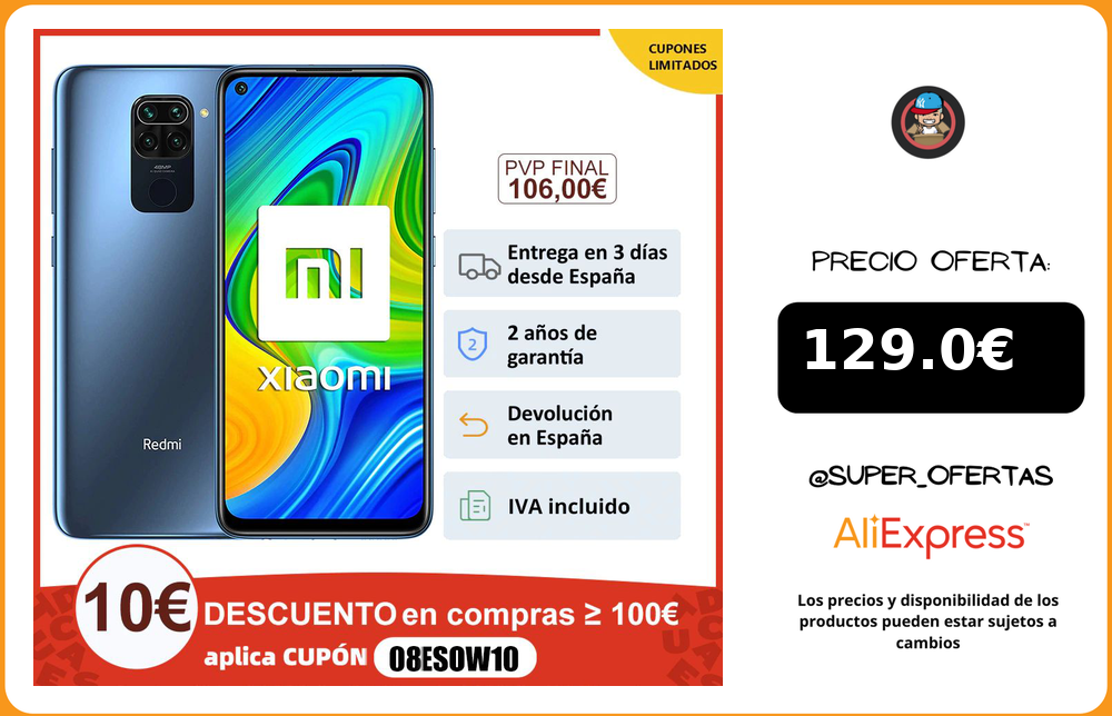 ![[Versión Garantía Española Oficial] Xiaomi Note 9 Smartphone con Pantalla FHD+ de 6.53″ DotDisplay 64GB 128GB, Cámara cuádruple|Teléfonos móviles|](https://gangasycupones.es/wp-content/uploads/thumbs_dir/1200px-Aliexpress_logo.svg_-ozx1hiyn8uy05bd2svo4gy7m4k3qtcask23u50z3ds.png)