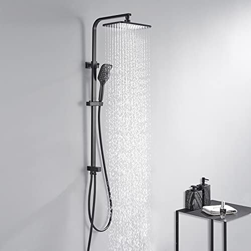 WINDALY Columna Ducha, Columna de Ducha con Hermoso Cabezal de Ducha de 9 Pulgadas y Ducha de Mano, Barra de Ducha Ajustable en Altura Para Baño, Negro