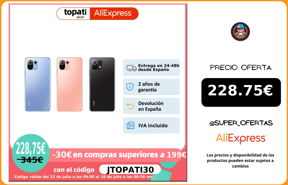 Xiaomi Mi 11 Lite, Smartphone 6GB+128GB, DotDisplay AMOLED 6,55″, carga rápida 33W, 64MP|16MP, NFC, Facial ID,Consigue increíbles descuentos en artículos de vendedores chinos y de todo el mundo. ¡Disfruta de envíos gratis, ofertas por tiempo limitado, devoluciones sencillas y protección al comprador!