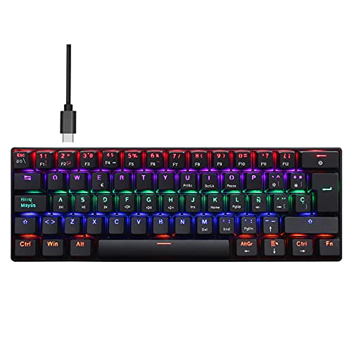 Zienstar 60% Teclado Mecánico Español para Juegos USB C con Cable 61Teclas Outmu Interruptor Azul-Negro