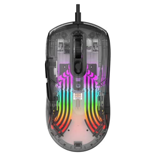 Zienstar-Ratones para Juegos USB con Carcasa de Cristal Transparente,Clic Silencioso,Retroiluminación RGB,7200 dpi-Negro